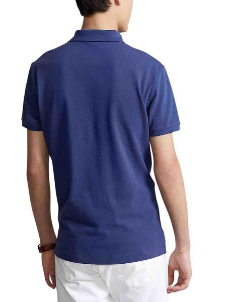 Polo de Polo Ralph Lauren para hombre. Manga corta. Cuello con tapeta de dos botones. Cuello y borde de manga acanalado. Ajuste Custom Slim Fit, intermedio entre Slim Fit y Classic Fit, ligeramente ceñido en cintura y biceps. Tejido piqué de algodón muy suave. Diseño liso azulón. Parte trasera más larga que la delantera. Caballo bordado en el lado izquierdo del pecho.