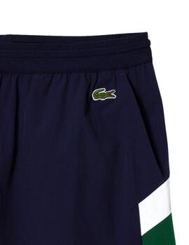 Bañador Lacoste de hombre. Diseño color block azul marino con detalles en verde y blanco. Cocodrilo bordado en la parte delantera. Cinturilla elástica con cordón a contraste. Dos bolsillos laterales. Tejido tafetán de poliamida reciclada con mezcla de elastano de rápido secado. Forro de malla. Bolsa para su transporte. Disfruta de la piscina y la playa a tope con los bañadores de Lacoste.