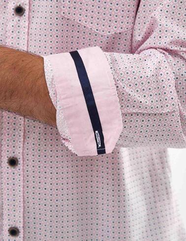 Camisa Florentino para hombre. Confeccionada en algodón con un diseño de estampado geométrico. Corte regular fit. Cuello inglés abotonado. Manga larga ramatada en puño con doble botón. Pinzas en la espalda. Puños a contraste y cinta en al abotonadura. Logotipo de la firma bordado en el bolsillo del pecho. Perfecta para eventos informales o para la ofincina cada día.