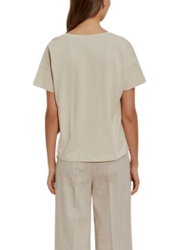Camiseta Lion of Porches de mujer con flor bordada escote V